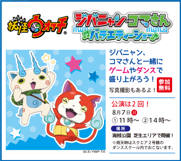 8/7(日)無料記念イベント開催いたしました!お子様に大人気の「妖怪ウォッチ」のバラエティーショーやテレビ和歌山でおなじみの「ほくろの毛体操」の公開収録も行われ、沢山の方にお集まりいただきました。