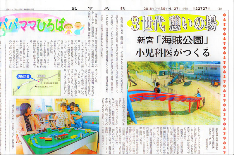 新聞掲載 「海賊公園」が新聞に掲載されました。